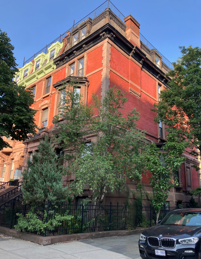 The facade of brick and brownstone was restored with brownstone material from Keim Germany by European craftsman. The sidewalk was restored to its original state with Bluestone and Granite curbs.